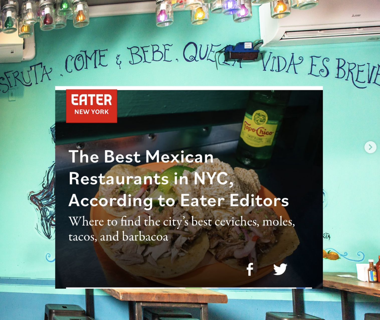 We are truly honored and proud to be named one of NYC’s best Mexican restaurants by @eater_ny